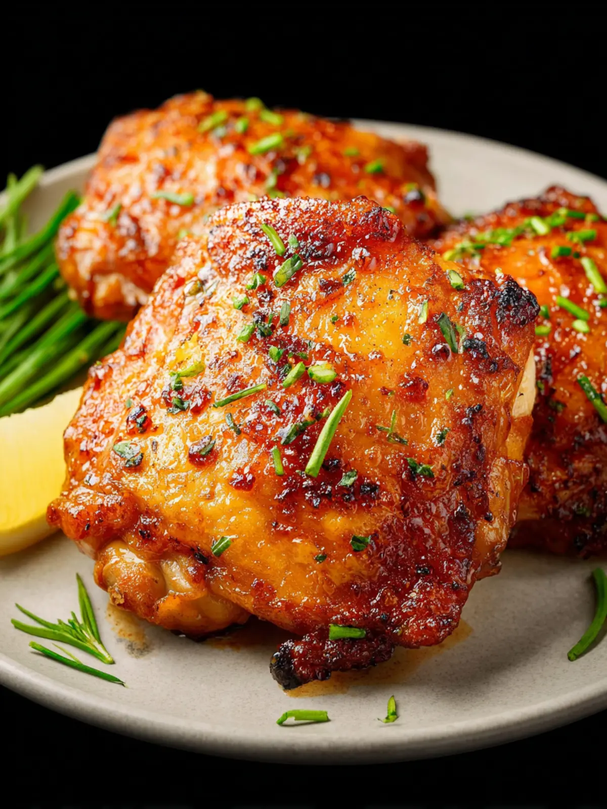 Delicious crispy baked chicken thighs with a flavorful seasoning blend.