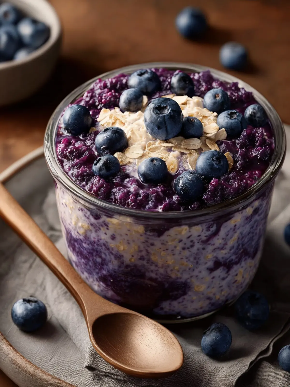 - In the morning, stir gently and top with extra blueberries, granola, or nut butter before serving.