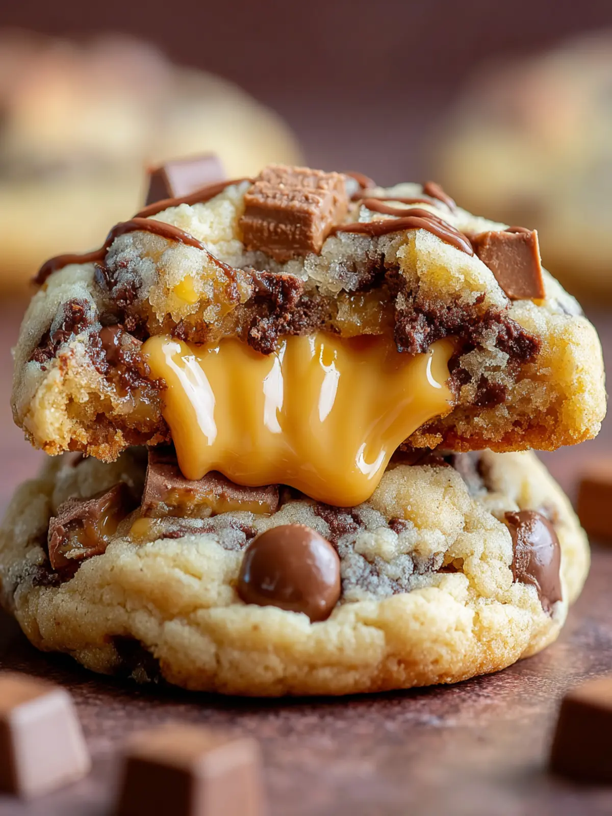 Soft and chewy cookies filled with caramel and chocolate for a delightful treat.