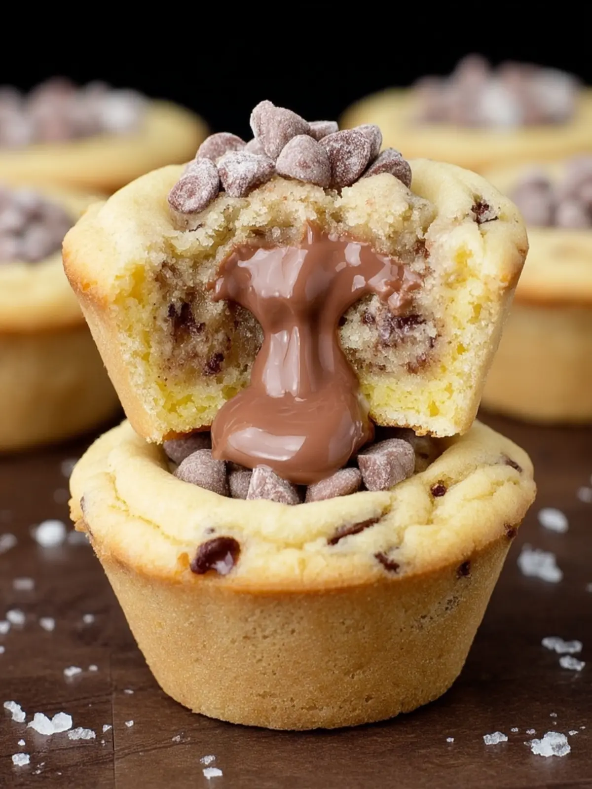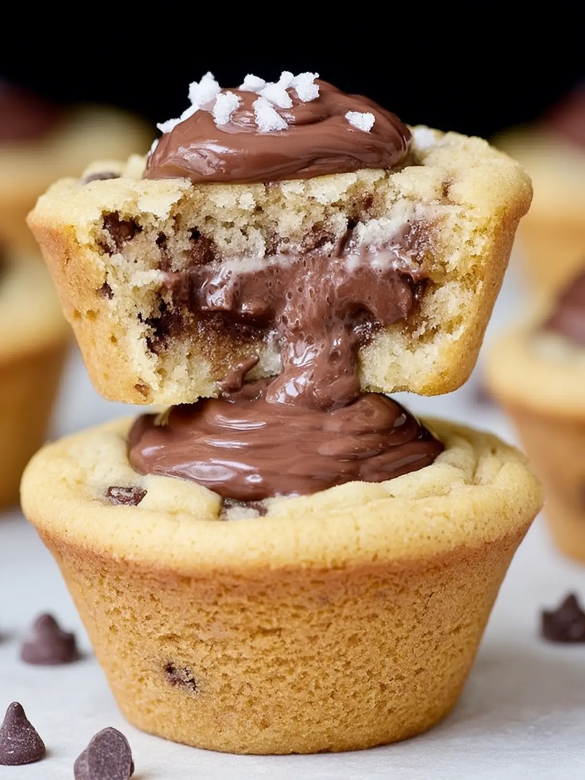 Delicious and easy to make Chocolate Chip Cookie Cups filled with chocolate or hazelnut spread, perfect for any occasion.