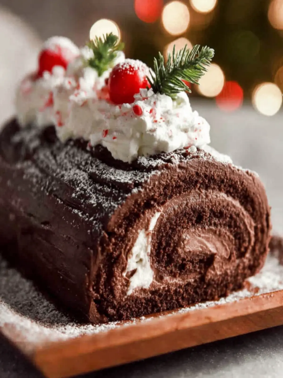 Get creative with your Chocolate Yule Log Cake decorations! While the traditional icing of chocolate ganache is delightful, you could also try: