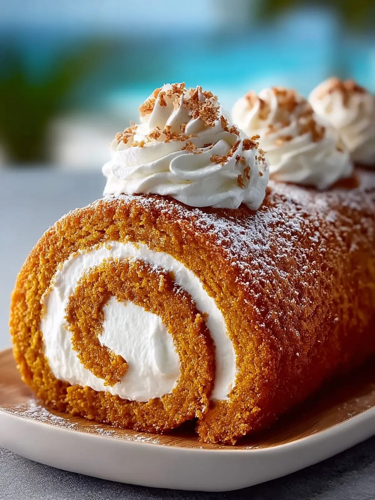 A delicious pumpkin roll filled with cream cheese and spices, perfect for fall.