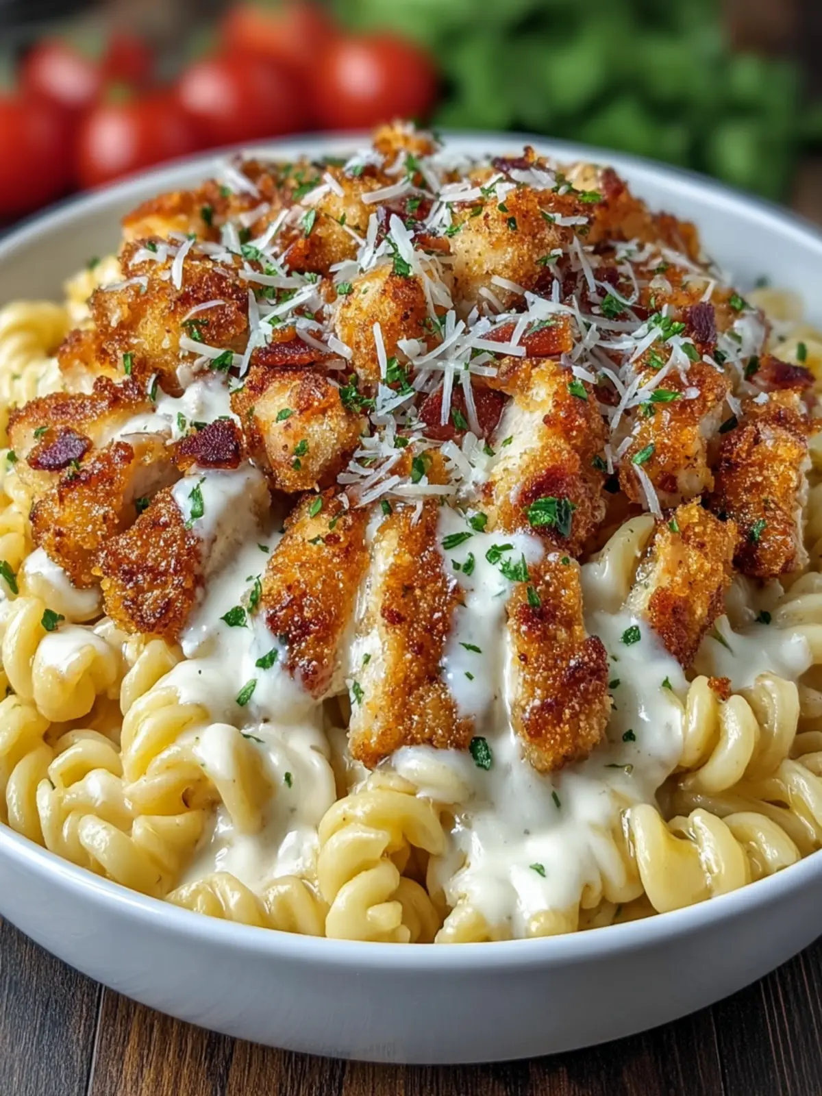 Finally, don’t forget to sprinkle freshly chopped parsley or basil on top of your Crispy Chicken Alfredo Pasta. Add a generous helping of grated Parmesan cheese for an extra layer of flavor. Not only does this enhance taste, but it also creates a beautiful presentation that’s sure to impress!
