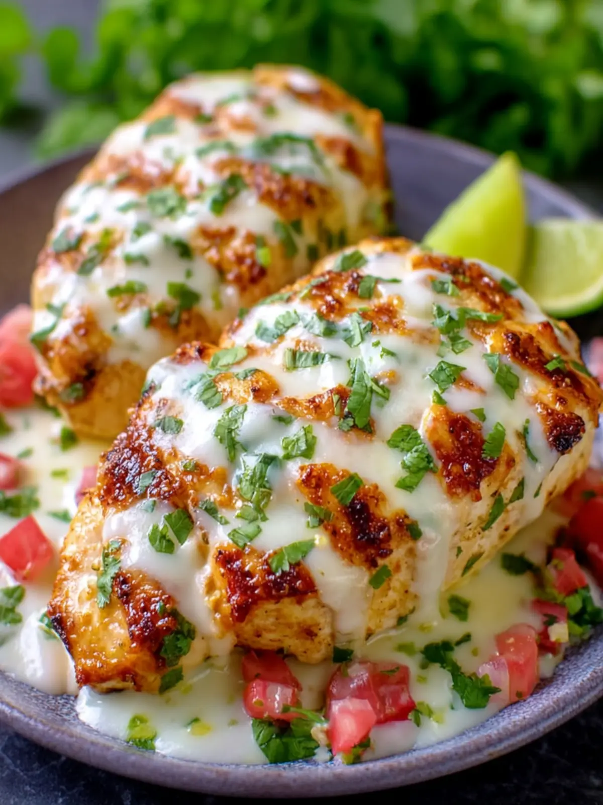 - Remove the chicken from the grill and optionally garnish with finely minced fresh cilantro. Serve warm with lime wedges on the side. Adjust seasoning with additional salt, pepper, or salsa as desired before serving.