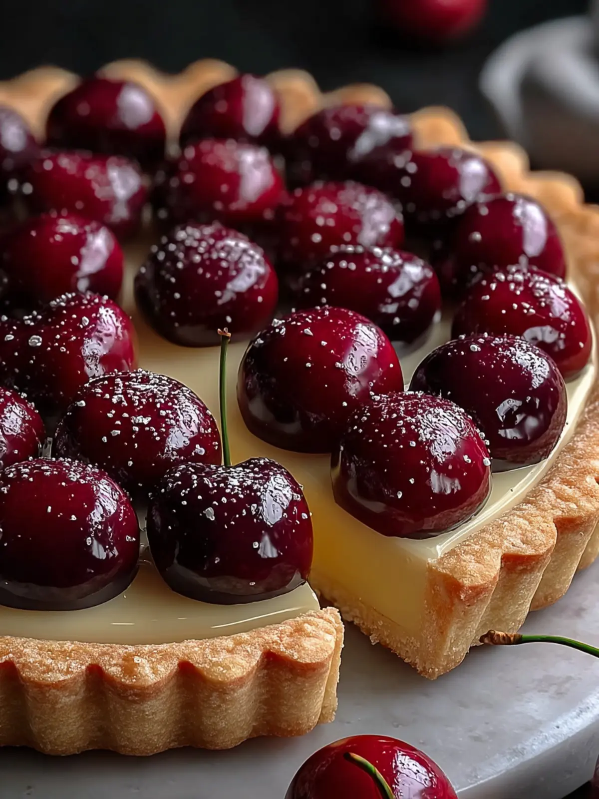 A delicious cherry tart made with fresh cherries and a buttery crust.
