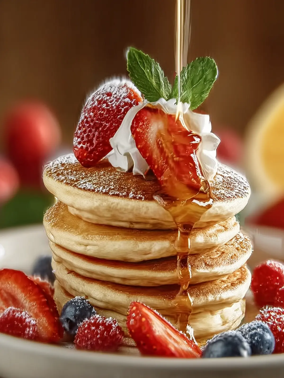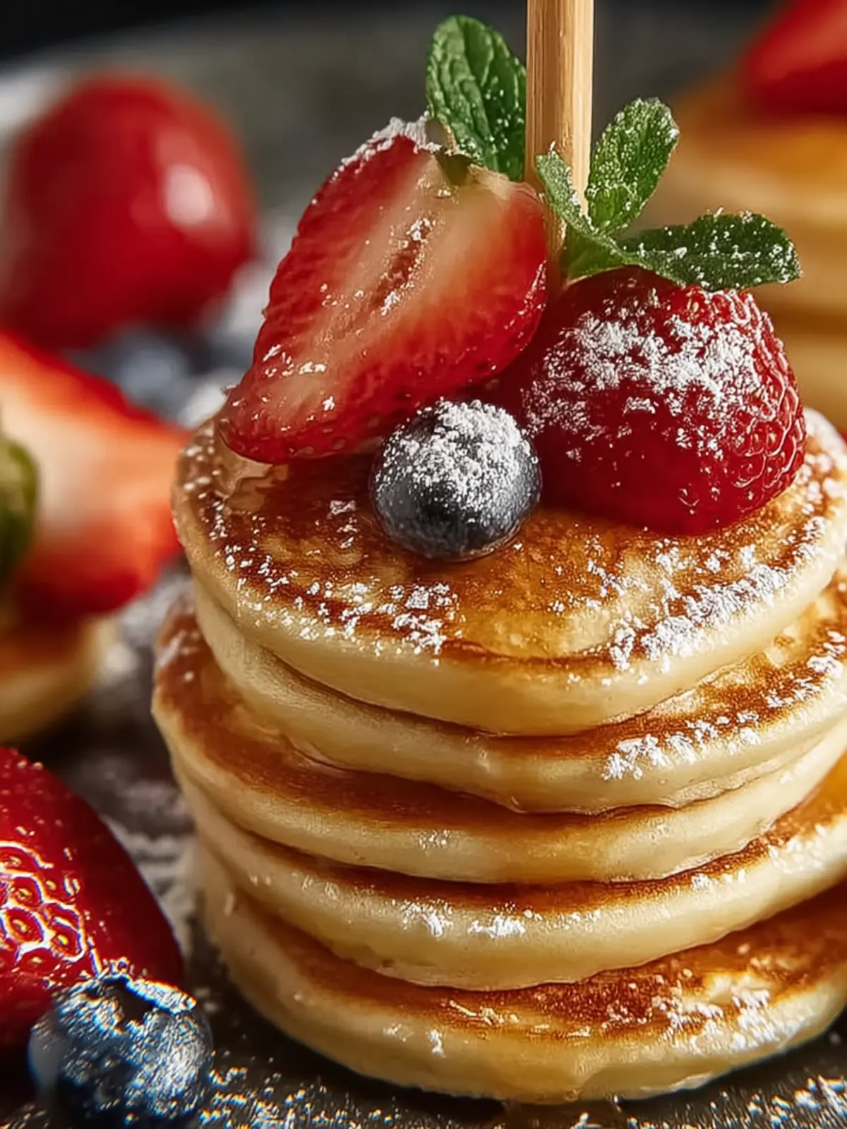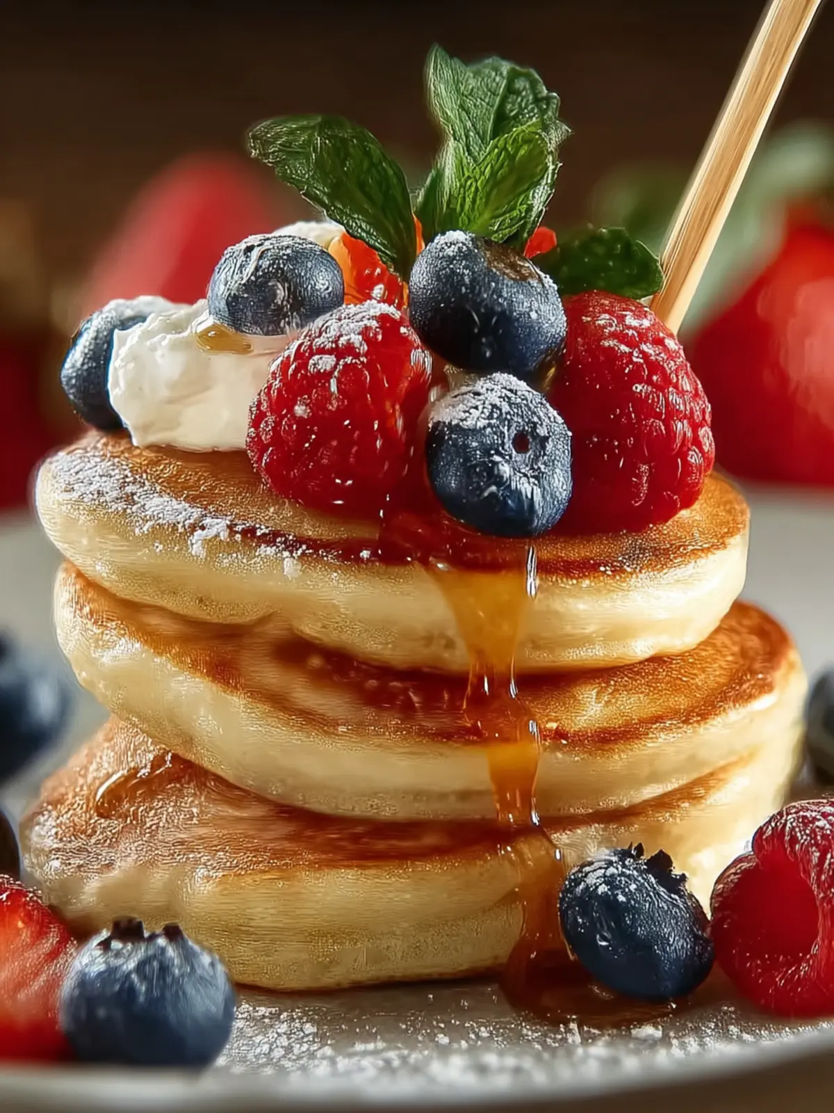 Classic Maple Syrup: A drizzle of warm maple syrup pairs perfectly with the airy sweetness of mini pancakes. It’s a timeless choice that never disappoints.