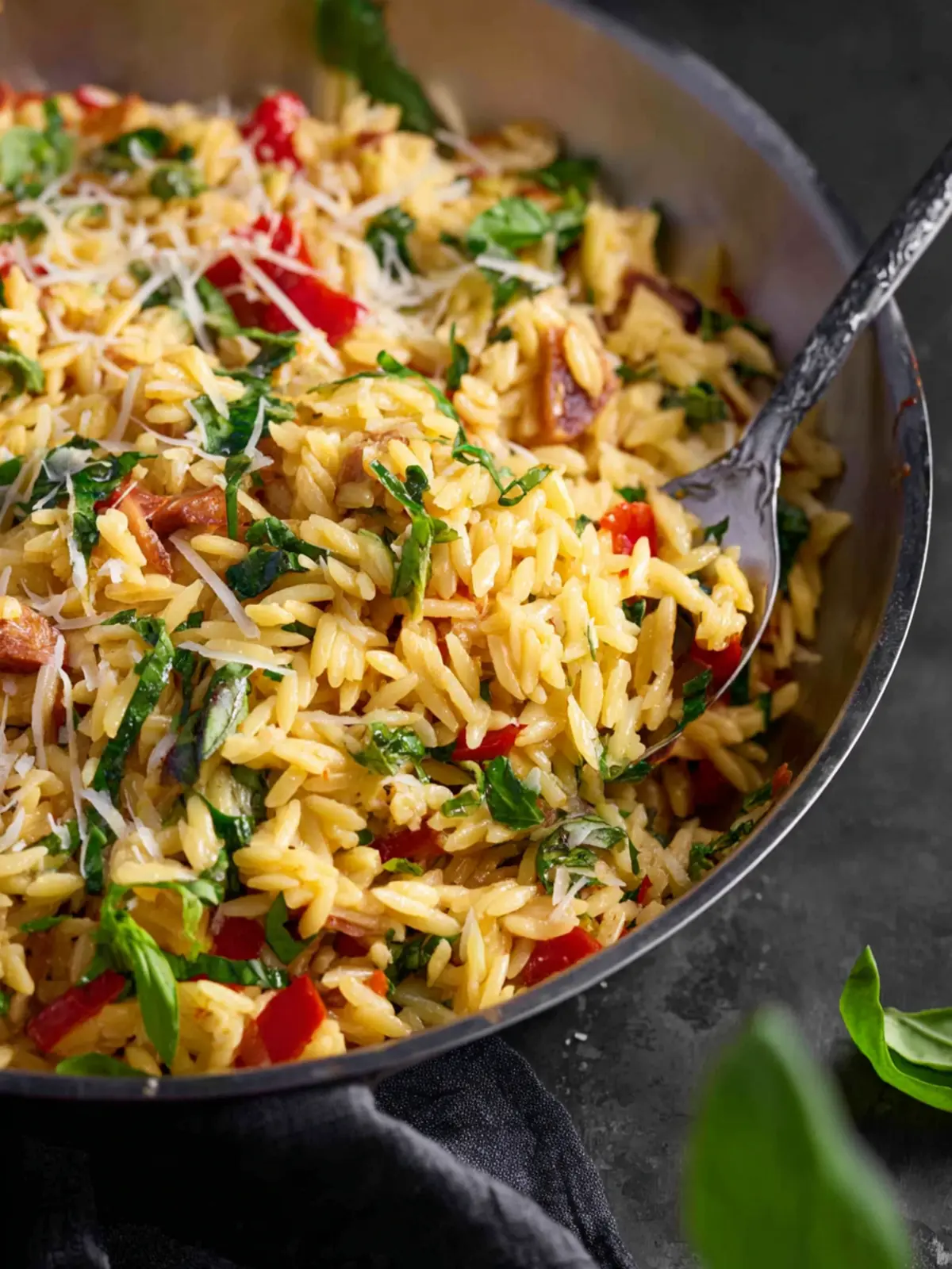 Creamy Orzo with Sun-Dried Tomatoes and Spinach