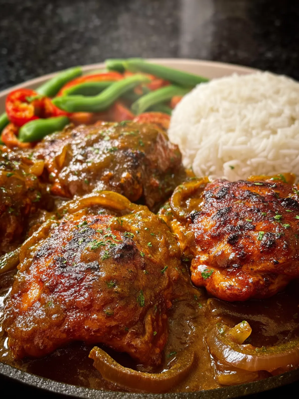 • Asian Fusion: Replace traditional seasonings with soy sauce, ginger, and garlic. Add green onions at the end for freshness. This variation transforms smothered chicken thighs into an Asian-inspired feast, great over rice or noodles.