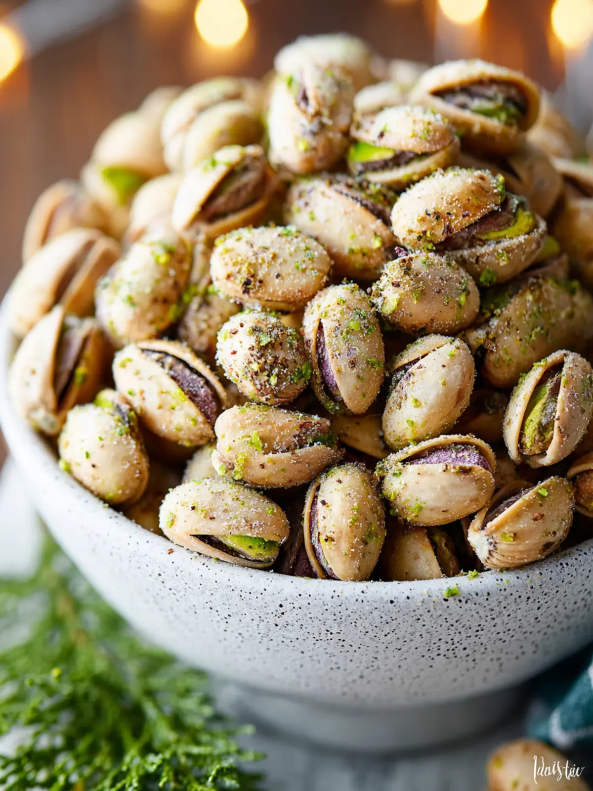 - Sprinkle about one-third of the seasoning mixture over the pistachios and stir well to combine. Repeat this process with the remaining seasoning mixture, stirring after each addition to ensure all the pistachios are thoroughly coated.