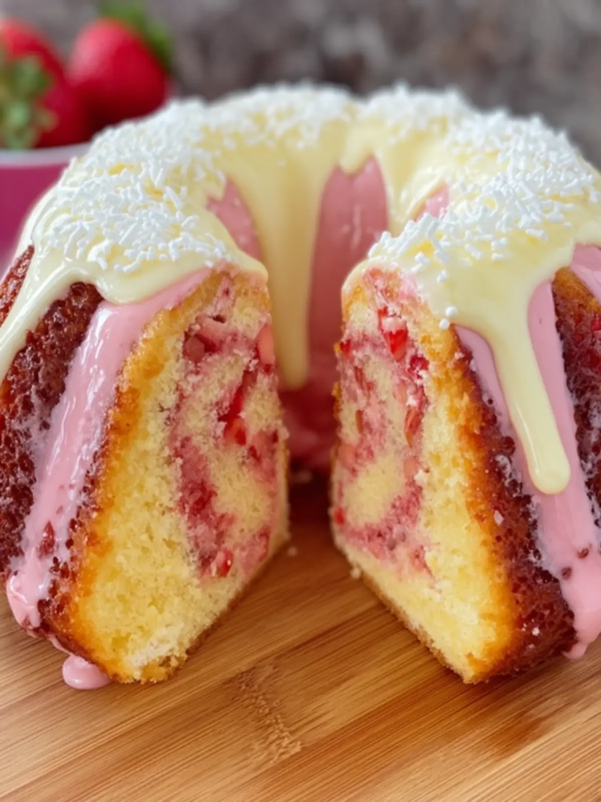 A delicious Strawberry Vanilla Marble Cake that combines delightful flavors and a beautiful presentation.