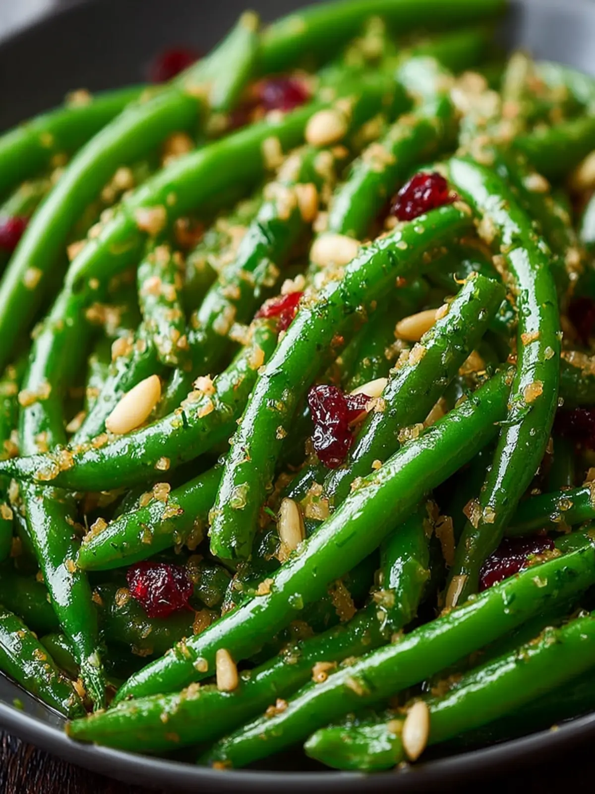A delicious side dish featuring fresh green beans, toasted nuts, and a hint of lemon.