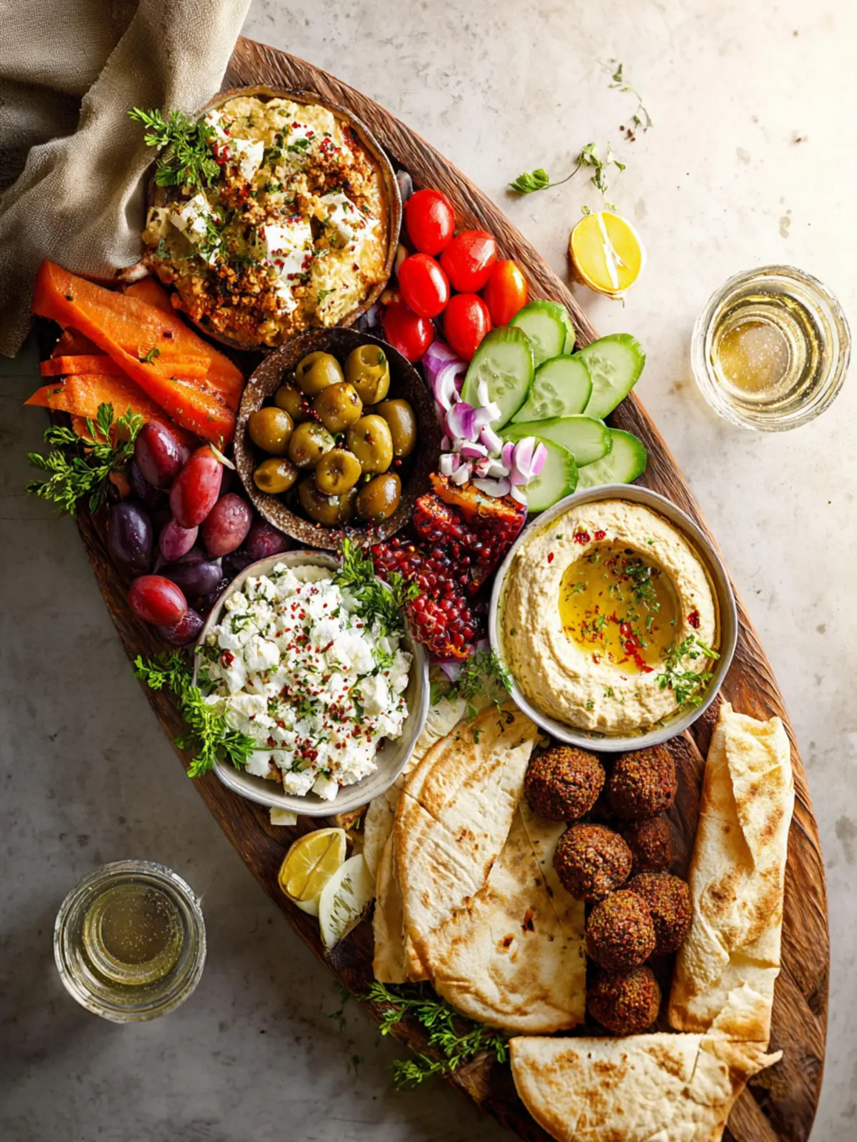 Customizable: Whether you prefer classic Mediterranean flavors or want to branch out with unique dips, the Vegetarian Mezze Platter is endlessly adaptable to suit your taste buds.